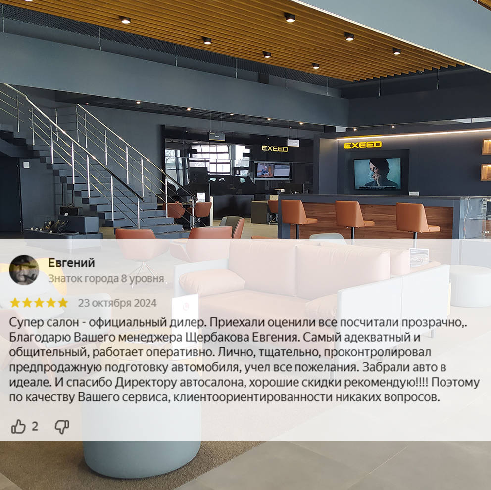 Мой опыт в автомобильной отрасли, более 10 лет, и моя высокая квалификация и знание автомобилей EXEED, подтвержденное прохождением сертификации бренда, помогут найти идеальное транспортное средство, подходящие под ваши потребности и стремления! Моя цель — сделать процесс покупки автомобиля максимально комфортным и приятным для вас.